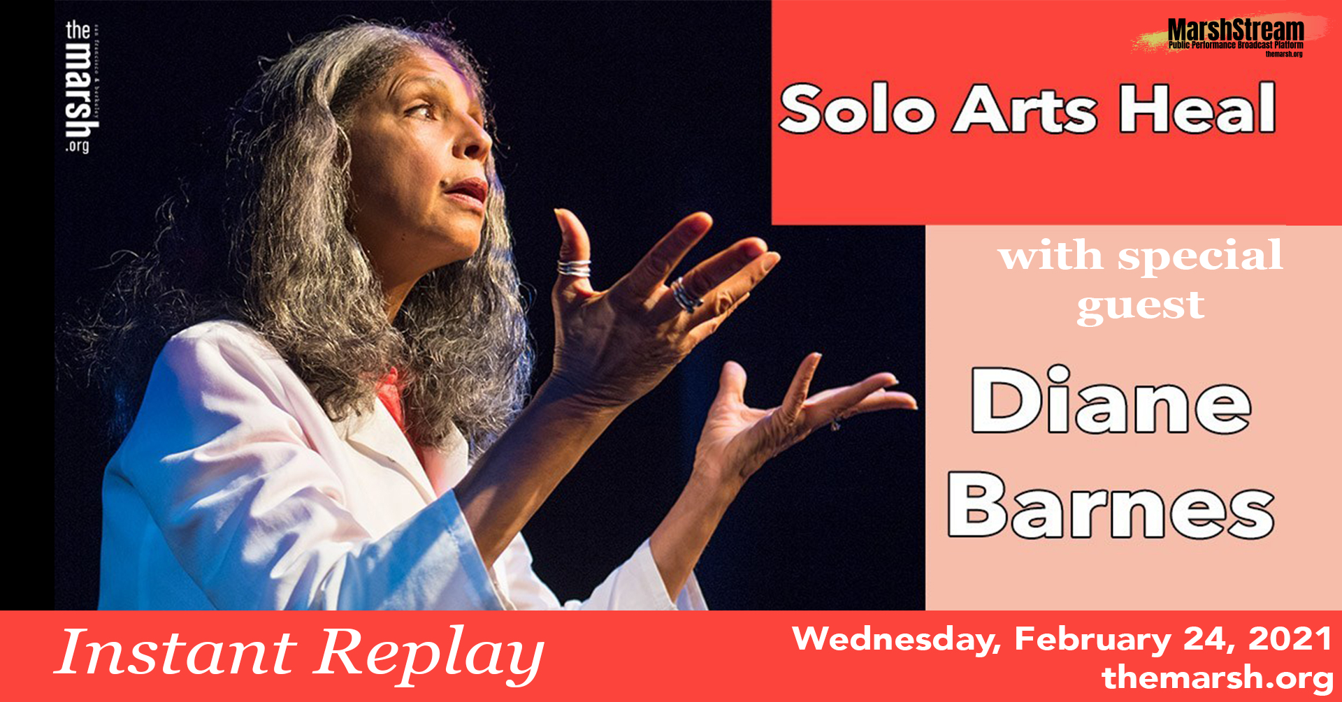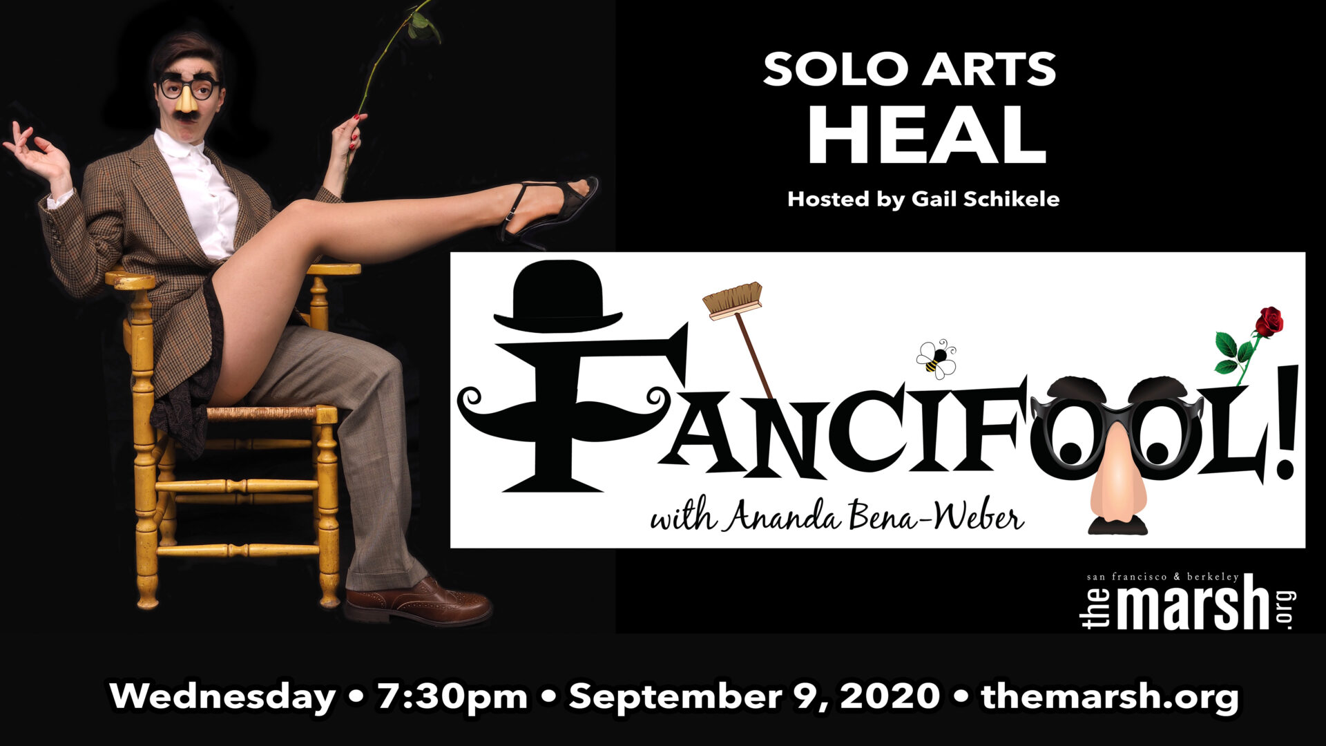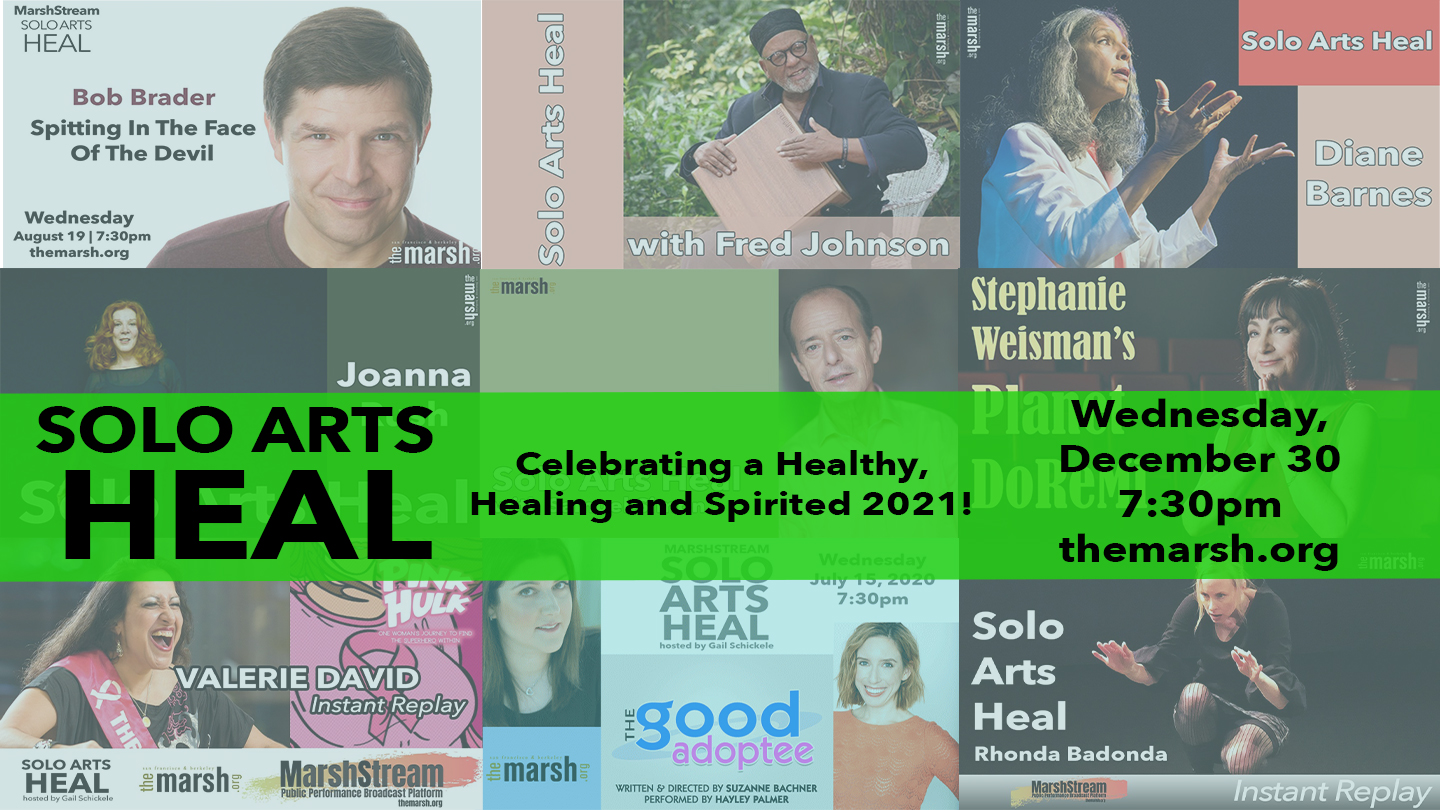 Solo performers present real-life, empowering stories. Transformative experiences for audiences. A theater of resilience that celebrates overcoming mental and physical life challenges and offers hope and inspiration. SOLO ARTS HEAL includes excerpts, talkbacks, and Q&A that provide education and advocacy. Readings or clips of performances will be shared by artists in conversation with Gail Schickele, whose work as a manager and producer of solo artists inspired collaboration of performing arts presenters with artists on a medical track based on their personal experience. The collective creative vision? To help communities through educational outreach and the healing power of the Arts.