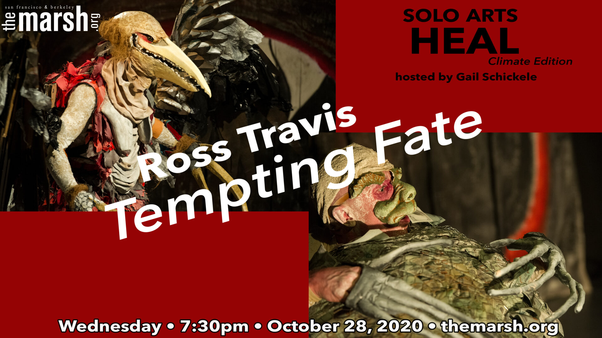 - Tempting Fate, a satirical sideshow entertainment reflecting the house of mirrors called climate change, premiered at Little Boxes Theater in 2019. The show was featured in the San Francisco Chronicle by Lily Janiak and was nominated for seven Theatre Bay Area Awards, including Outstanding Solo Production, Outstanding Direction of a Specialty Production, Outstanding Creative Specialties for Mask AND Puppet Design, Outstanding Costume Design, and Outstanding Sound Design. The show won for Outstanding Creative Specialties for Mask Design.