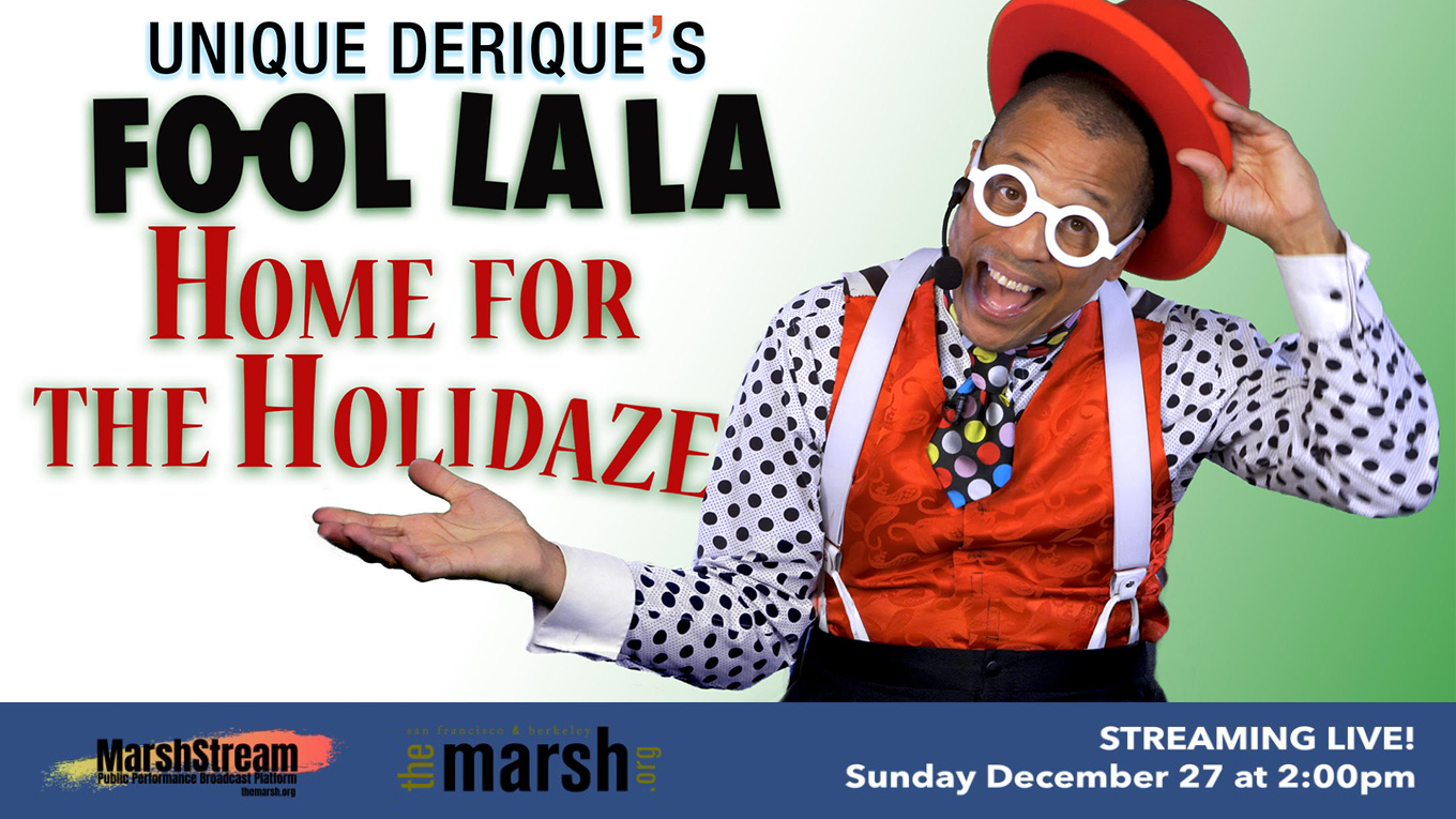 To cap off this most unusual year of 2020 amidst a worldwide pandemic that has forced us to maintain physical distance, wear masks, and take to our computers for virtual learning, work, and connection, you’re invited to zoom along with Unique Derique this season in Fool La La: Home for the Holidaze for a zany at-home virtual holiday celebration full of technological mishaps and merry mayhem that prove being apart doesn’t mean we can’t have fun together! After the show, keep the virtual celebration going with a free hambone and juggling workshop for all ages.