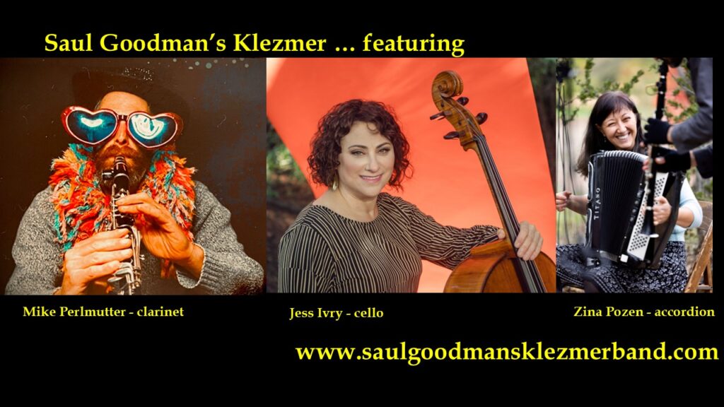 Saul Goodman’s Klezmer Band performs music for weddings, b’nei mitzvah parties, and all manner of concerts and celebrationsaround the San Francisco Bay Area and beyond. Our sound draws from our modern cosmopolitan surroundings while being firmly rooted in traditional Jewish folk music tracing centuries back from Eastern Europe. Our music brings people together and lifts their spirits and energies. We strive to keep it “all good man” wherever we perform. http://www.saulgoodmansklezmerband.com.